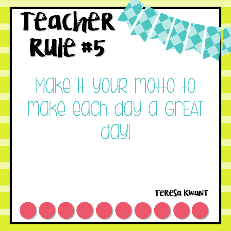 I know, this one seems simple. However, there are those days. You know what I am talking about. The days a kid throws up all over the floor, or when a parent barges into your room unexpected (or both). Or the days you get observed and your lesson totally flops. There will be those days, but there is always something great in each day. Find that greatness and let it shine!