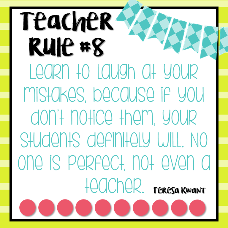 There has never been a truer statement. Whether you misspell something on the board, or accidentally give an incorrect fact about your science lesson, there is always a student that likes to correct the teacher. Laugh at your mistakes, let the student know they are awesome, and move on. Laughing always makes instances like this better.