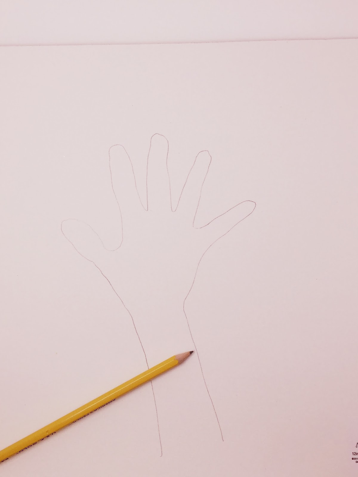 3. After you are done tracing, cut the hand out. Also, cut a long strip 2-3 inches wide, out as well. The long strip will be the base of your tree.